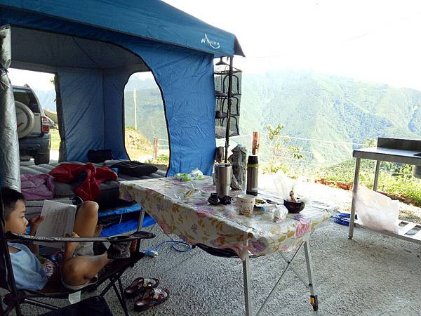 露營的好處就是可以說走就走!這次雙十節四天的連假原本只露後面的兩天,但算算時間離上次已有三個禮拜沒露,真是渾身不對勁,在網路搜尋許多的營區,早早都已經滿位,只能等待釋出的營位,突然發現今年三月才開的營區,海拔1050公尺,但只剩有棚的位置,詢問高度能夠搭的下我們這種的客廳帳掛內帳,二話不說叫下訂了!